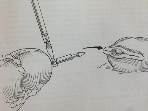 Exploración del conducto y extracción de los cálculos.